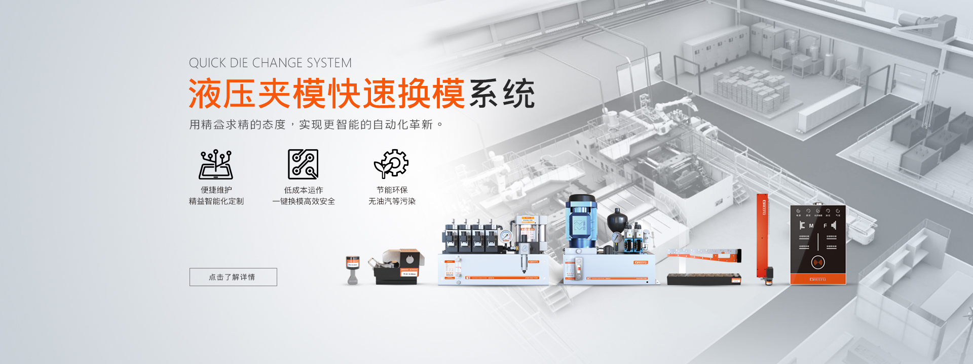 液壓快速換模系統(tǒng) 格萊富注塑機快速換模系統(tǒng)采用 TY 夾模器,以油壓驅動取代舊式固定夾的方式,不需要在模產(chǎn)過程中,短時間內(nèi)輕易完成換模作業(yè),更省時省力。目前已在家電,汽車、機械等行業(yè)豐富應用